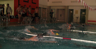Einem Kilometer schwimmen auf 25m-Bahnen. Gut, wenn man einen Bruder am Beckenrand hat, der mitzählt. Wir starteten in unterschiedlichen Gruppen.