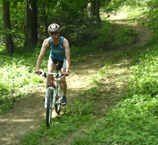Jeder nahm nun seinen Rückstand auf den Vordermann mit auf 17,7km langen Mountainbike- Rundkurs. Die Strecke erfordert keine Technik, aber ordentlich Druck auf dem Pedal. Die Wege, -meine
