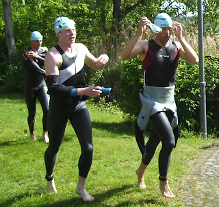 Radfahren mit Windschatten und 7,5km Laufen. Der Clou dabei, bei jedem Wechsel zwischen den Disziplinen und im Ziel als Team anzukommen.